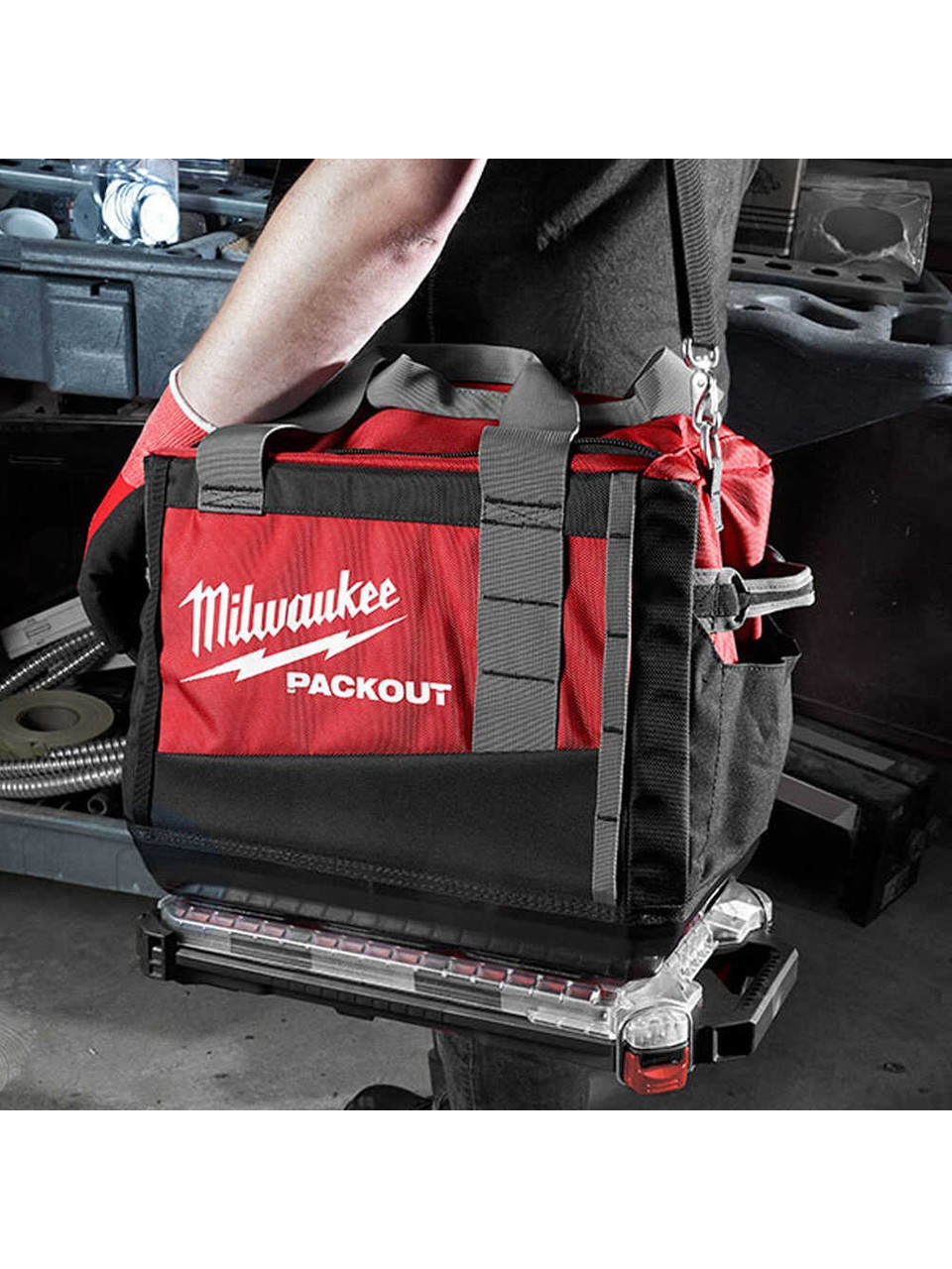 Modüler PACKOUT™ Sistemi Uyumluluğu: Bu çanta, Milwaukee’nin modüler / birleştirilebilir PACKOUT sistemi ile tamamen uyumlu; diğer kutu ve organizer bileşenlerin üstüne veya yanına sabitlenebilir Dayanıklı Malzeme: 1680D Balistik naylon ile zorlu saha koşullarına karşı yüksek direnç sunar Darbelere Karşı Sert Taban: Polimer taban; çanta içeriğini su, kir ve darbelere karşı korur ayrıca diğer PACKOUT parçalarına sabitlenmeyi sağlar . Büyük Depolama Alanı: 38 cm genişliğinde (“15 inç”) ve ideal ölçüde; büyük veya kutulu el aletleri için geniş iç hacim sunar Tasarım ve Taşıma Kolaylığı: Hem yan hem üst tutma kulpları, ayrıca yastıklı ve ayarlanabilir omuz askısı bulunur