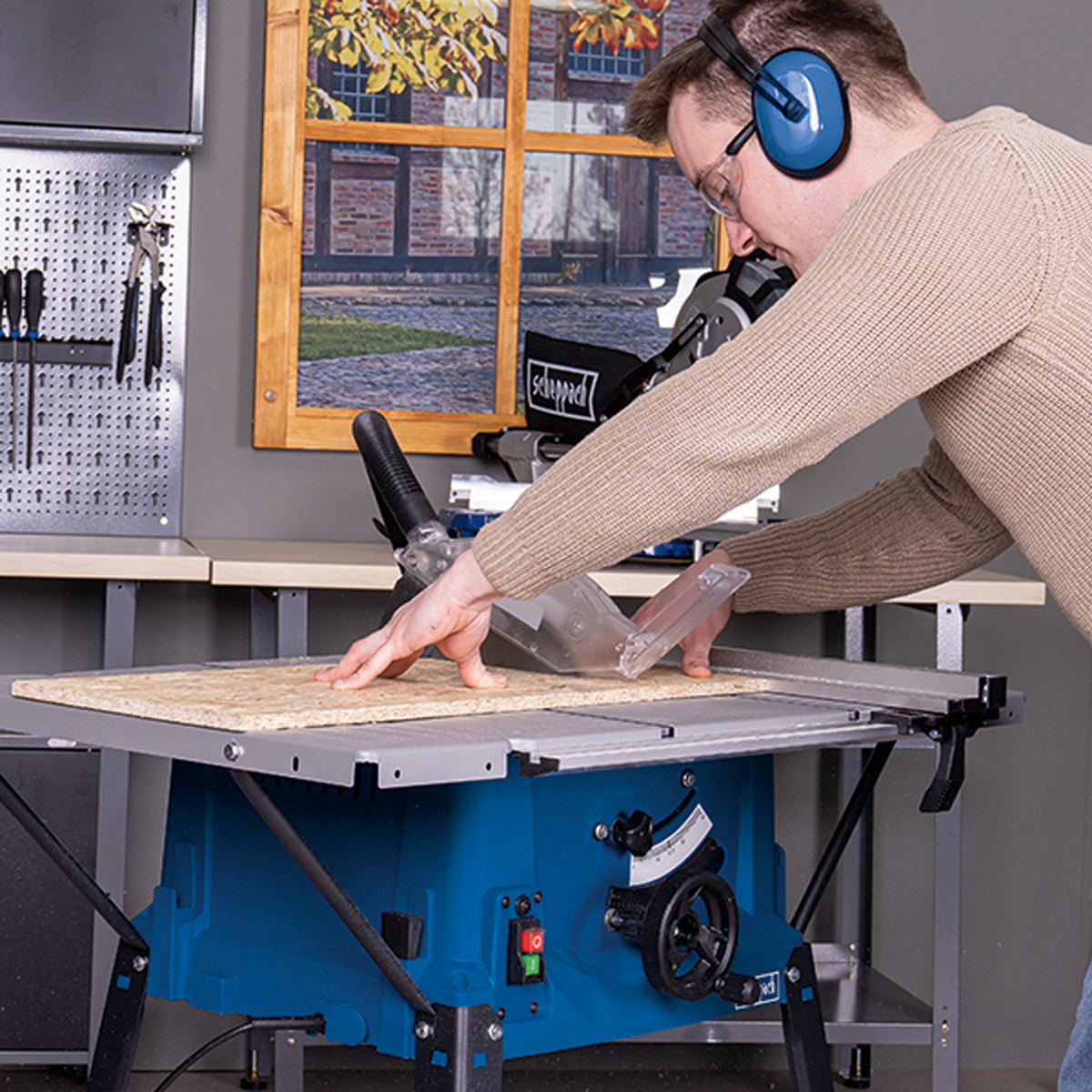Scheppach HS100S, tezgâh tipi (masalı) bir yatar daire testeresidir. Ahşap, levha malzemeleri ve benzeri tahtalık işleri kolaylaştırmak amacıyla tasarlanmıştır.