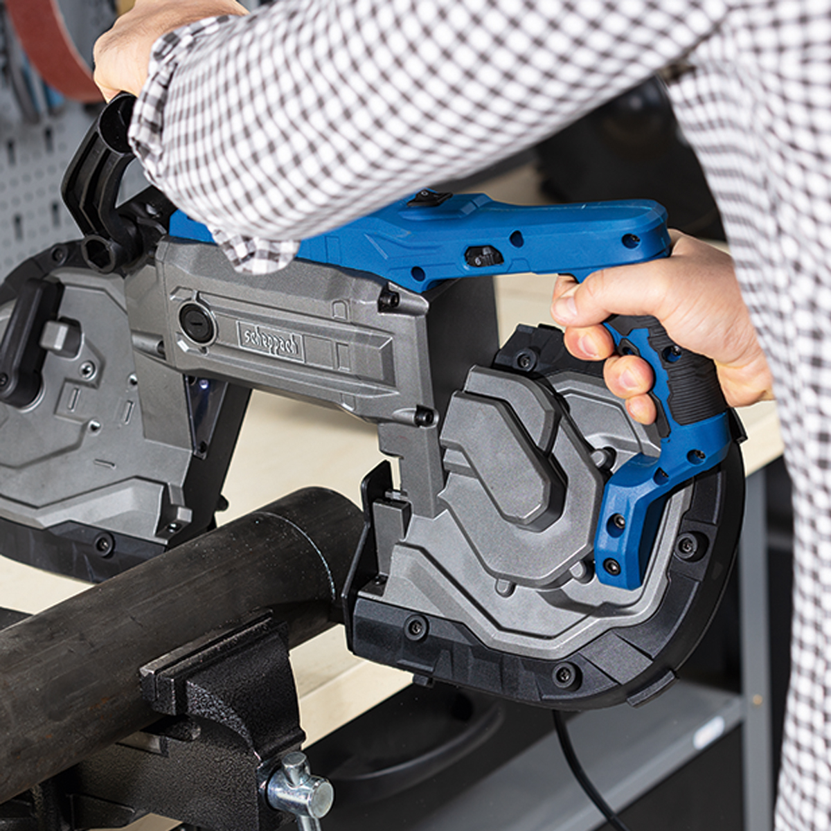 Scheppach MBS1200, metallerin, profillerin, boruların ve benzeri sert malzemelerin kesilmesi için tasarlanmış bir metal şerit (bant) testeresidir .Hem atölye kullanımına hem de saha / montaj ortamlarına uygun, taşınabilirlik ile sabit kullanım esnekliği sunar. Başlıklı (pivot) kesim kafası sayesinde 0°–45° açılı kesimler yapılabilir.