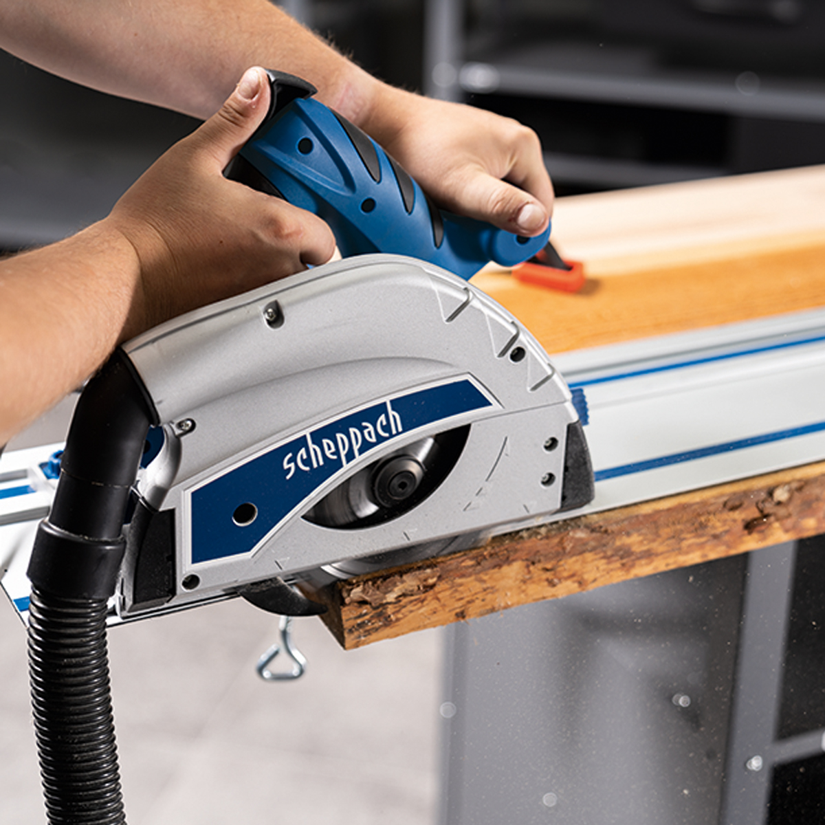 Scheppach PL55, bir plunge saw (dalma tip testere) — “dalma” (plunge) kesim yapabilen, kılavuz ray ile çalışabilen, 3’ü‑1 arada (dalma testeresine + raylı panel/levha kesim sistemi + el daire testere özellikleri bir arada) bir kesme aracıdır. Kesim derinliği, hassasiyet ve çok yönlülüğüyle hem atölye kullanımına hem saha (şantiye vb.) işler için uygundur.